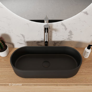 Arcqua Case opbouw waskom cast marble ovaal 60*26 mat zwart