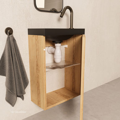 De Arqua fonteinset wordt geleverd met alle onderdelen. Van de handige kast tot de waste, sifon en de zeer elegante wasbak. Maak je toiletruimte stijlvol met deze fonteinset.