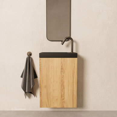Arcqua fonteinset kast natural oak wasbak mat zwart - kraanset gunmetal rechts