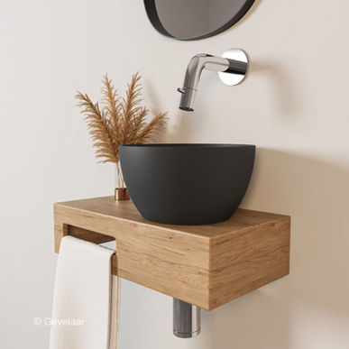 Arcqua Olivia fonteinset eikenhout waskom mat antraciet rechts inb kraan chroom