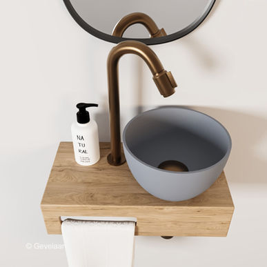 Arcqua Olivia fonteinset eikenhout waskom mat beton rechts kraan bo brons koper