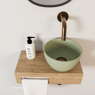 Arcqua Olivia fonteinset hout waskom pastel groen rechts inb kraan brons koper