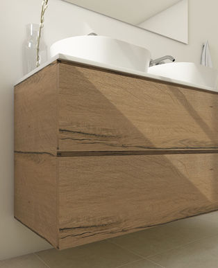 - Natuureiken wastafelmeubel met een afdekplaat in de kleuren mat wit, glans wit of natuureiken.