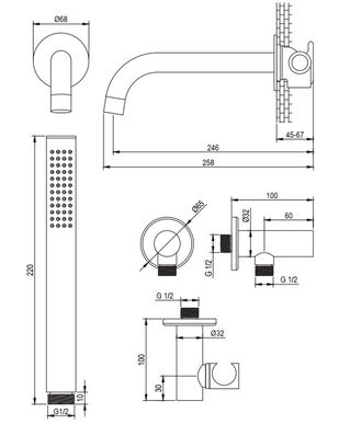 Brauer inbouwbadkraan met uitloop set 1 incl. staaf handdouche chrome ed.