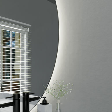 Ronde spiegel met indirecte verlichting straalt een tijdloze schoonheid uit en past in diverse badkamerstijlen.