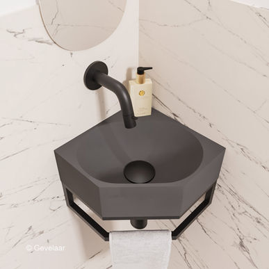 INK Matrix fonteinset wasbak quartz beton frame zwart - inbouw kraan mat zwart