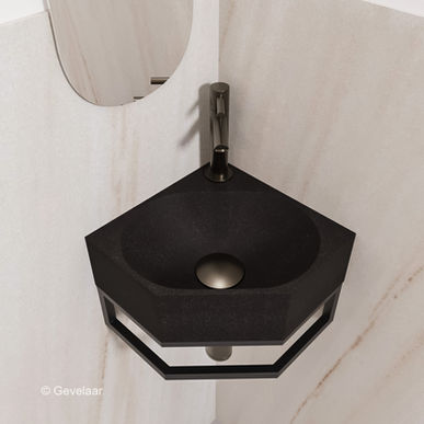 De set wordt geleverd met alle benodigde onderdelen, waaronder een stijlvolle zwarte fonteinkraan, die perfect is voor het creëren van een moderne look. De wasbak is van hoogwaardig polystone en heeft een opvallende vorm, wat bijdraagt aan de algehele uitstraling van uw toiletruimte.
