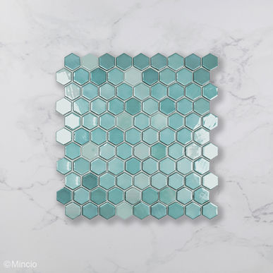 Turquoise Hexagon Glasmozaïek Tegels 35x35mm