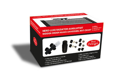 Tanaro Radiator aansluitset Onderblok Mat Zwart Haaks Universeel (VRD)