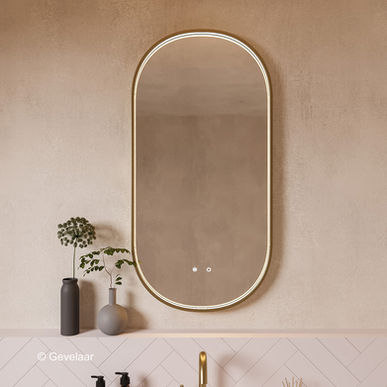 Geef je badkamer een luxe uitstraling met deze ovale spiegel in geborsteld goud. De indirecte dimbare verlichting aan de binnenzijde zorgt voor sfeervol en gelijkmatig licht, perfect voor een ontspannen badkamerervaring.