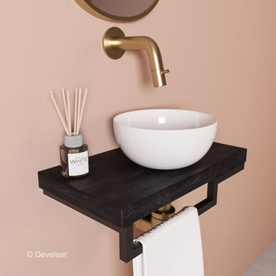 Proline TOP Black oak fonteinset inb kraan geb goud kom 20cm glans wit houder L