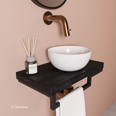 Proline TOP Black oak fonteinset inb kraan koper kom 20cm glans wit houder L