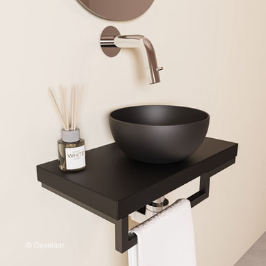 Proline TOP mat zwart fonteinset inb kraan chroom kom 20cm mat zwart houder L