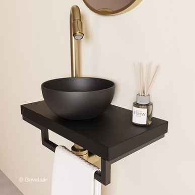 Proline TOP mat zwart fonteinset kraan bo geb goud kom 20cm mat zwart houder R