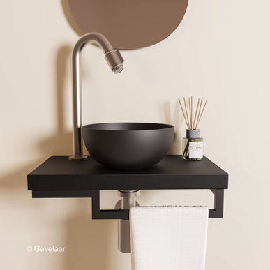 Proline TOP mat zwart fonteinset kraan bo RVS kom 20cm mat zwart houder R