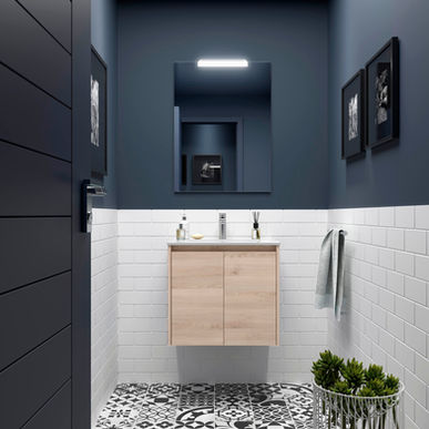 Maak je badkamer compleet met het Renato Joan Badmeubel met een afmeting van 60 cm breed. Dit badmeubel heeft twee greeploze MDF- deuren in de kleur natural oak die mat is afgewerkt.