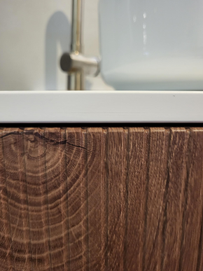 Ribbel Bruin Eikenhout Onderkast Badmeubel 120cm + Afdekplaat Castmarble 120 cm.