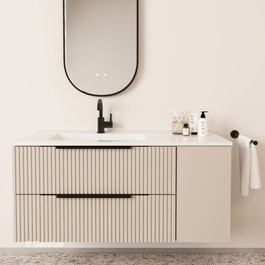 De Tanaro Cliff Rib een badmeubel serie, exclusief van Gevelaar.nl. De serie bestaat uit badmeubels in verschillende kleuren en afgewerkte onderkasten gecombineerd met een wastafel. Het badmeubel kenmerkt zich door zijn ribbelfront en afwerking