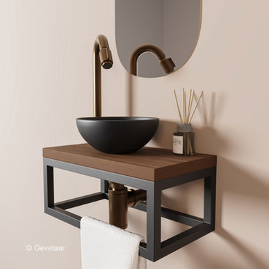 Tanaro Esbow fonteinset waskom mat zwart - plank noten - kraanset brons koper