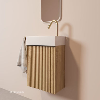 Tanaro Freshdip Fonteinset kast eikenhout wasbak omkeerbaar kraanset geb. goud