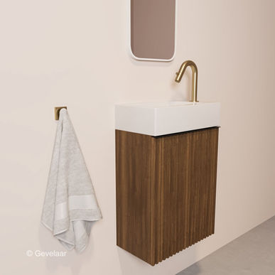 Tanaro Freshdip fonteinset onderkast noten wasbak omkeerbaar - kraanset geb goud