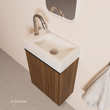 Tanaro Freshdip fonteinset met kastje noten wasbak omkeerbaar kraanset RVS
