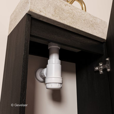 Het is mogelijk om deze fonteinset naar voorkeur te samenstellen. Hoe leuk is dat? Met de vele keuzeopties zoals de afwerking van de fonteinkraan, afvoerplug en sifon, beschikbaar in mat zwart, chroom, geborsteld goud, geborsteld koper of RVS. Maar ook bijvoorbeeld de kleur van het kastje, bijvoorbeeld in het zwart of noten.