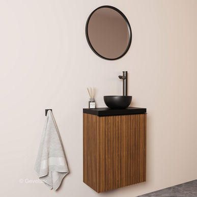Tanaro Freshnook fonteinset kastje noten kraan gunmetal waskom mat zwart