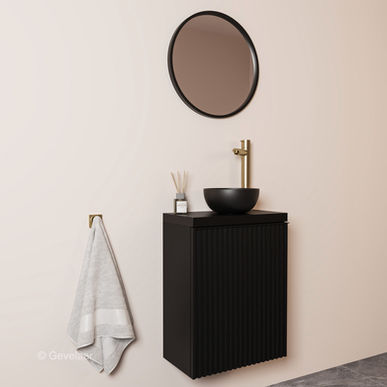 Tanaro Freshnook fonteinset kastje zwart kraan geb. goud waskom mat zwart