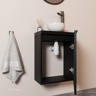 De Freshnook wordt geleverd met alle onderdelen. Van de handige kast tot de waste, sifon en de zeer elegante waskom. Maak je toiletruimte stijlvol met deze fonteinset.