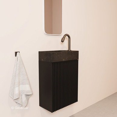 Tanaro freshstone fonteinset kast zwart wasbak rechts hardsteen gunmetal