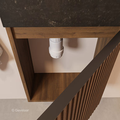 Het is mogelijk om deze fonteinset naar voorkeur te samenstellen. Hoe leuk is dat? Met de vele keuzeopties zoals de afwerking van de fonteinkraan, afvoerplug en sifon, beschikbaar in mat zwart, chroom, geborsteld goud, geborsteld koper of RVS. Maar ook bijvoorbeeld de kleur van het kastje, bijvoorbeeld in het zwart of noten.
