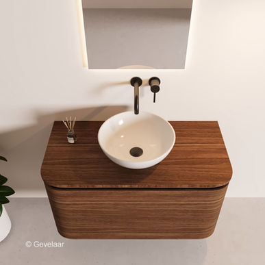 - Afgeronde vlakke front noten badkamermeubel 100 cm. 2 lade (waarvan 1 binnenlade)