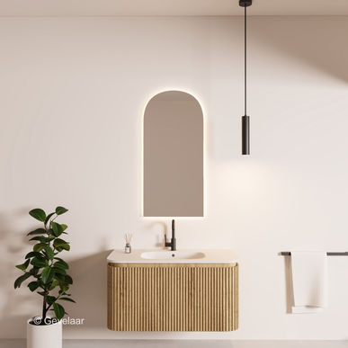 - Afgeronde ribbelfront eiken badkamermeubel 100 cm. 2 lade (waarvan 1 binnenlade)