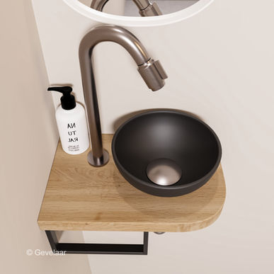 Tanaro Lille fonteinset eiken kom frame mat zwart - gebogen kraan RVS
