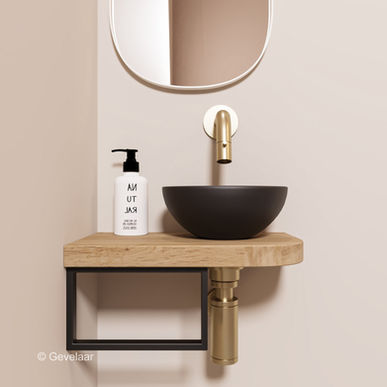 Tanaro Lille fonteinset eiken kom, frame mat zwart - kraanset geborsteld goud