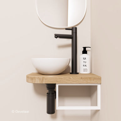 Tanaro Lille fonteinset eiken kom frame wit - rechte kraan mat zwart