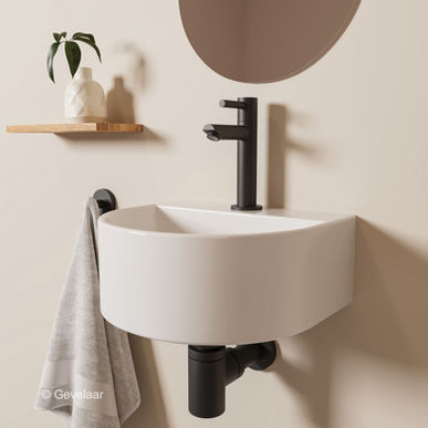 Tanaro Mezzaluna fonteinset halfrond wasbak glans wit rechte kraan mat zwart