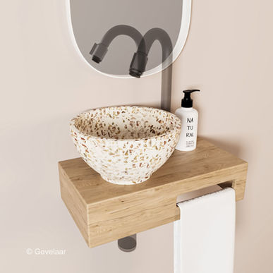 Tanaro Oasis fontein eikenhout incl. waskom terrazzo beige links
