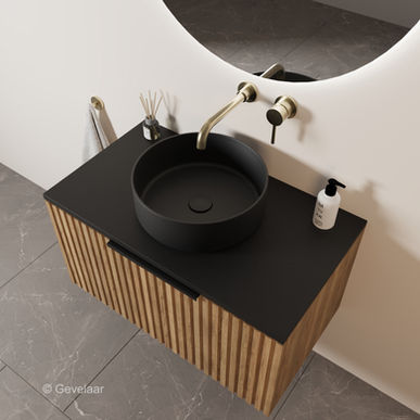 Bekijk de Tanaro premium waskom rond mat zwart glad met clickwaste 35 cm