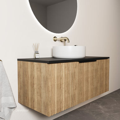 Tanaro Ribbeluxe surf badkamermeubel 100 cm. Ribbelfront eiken - plank mat zwart