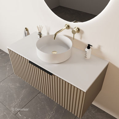 Tanaro Ribbeluxe surf badkamermeubel 100 cm. Ribbelfront taupe - plank mat wit