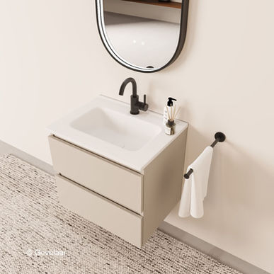 Tanaro Sobio badmeubel cappuccino 60 cm wastafel mat wit 2 laden