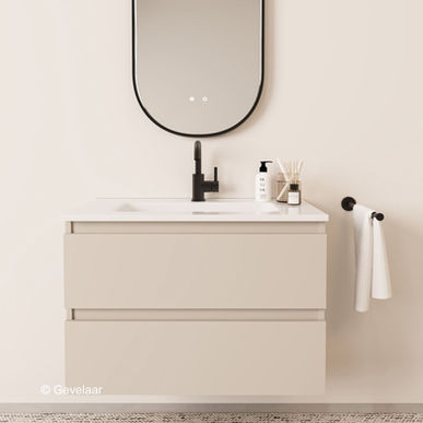 - Vlakke front cappuccino badkamermeubel 80 cm. met 2 laden