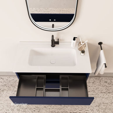 - Vlakke front intens blauw badkamermeubel 90 cm. met 2 laden