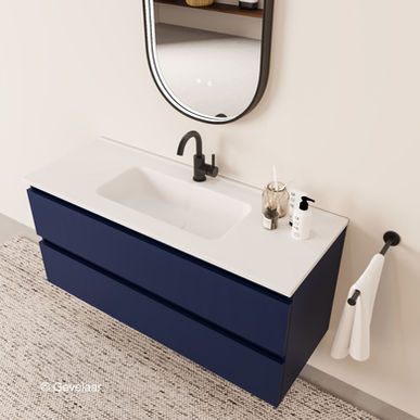 - Vlakke front intens blauw badkamermeubel 120 cm. met 2 laden
