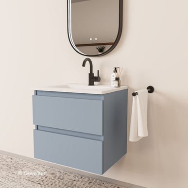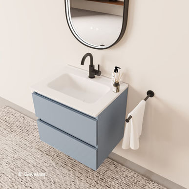 - Vlakke front mist blauw badkamermeubel 60 cm. met 2 laden