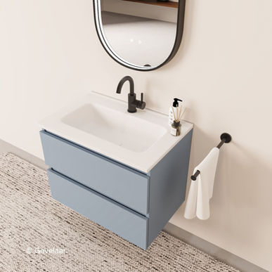 - Vlakke front mist blauw badkamermeubel 70 cm. met 2 laden