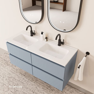 - Vlakke front mist blauw badkamermeubel 120 cm. met 4 laden