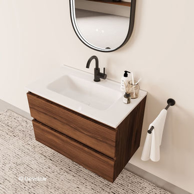 - Vlakke front noten badkamermeubel 80 cm. met 2 laden